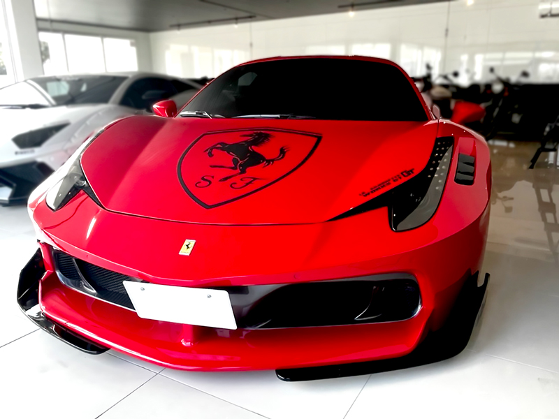 フェラーリ458イタリア ASK 年式 2010(H22) 排気量 4500㏄ ミッション 7AT 走行距離 1.7万㎞ 車検 R06.01 車体 リバティウォークシルエットbody kit サスペンション エアーホース 4本独立 マフラー ブリリアントマフラー ホイール FORGEATO AW 20inch その他 ETC、バックカメラ